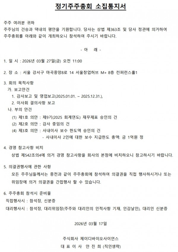 제9기 정기주주총회 소집통지